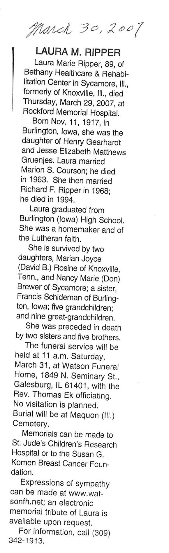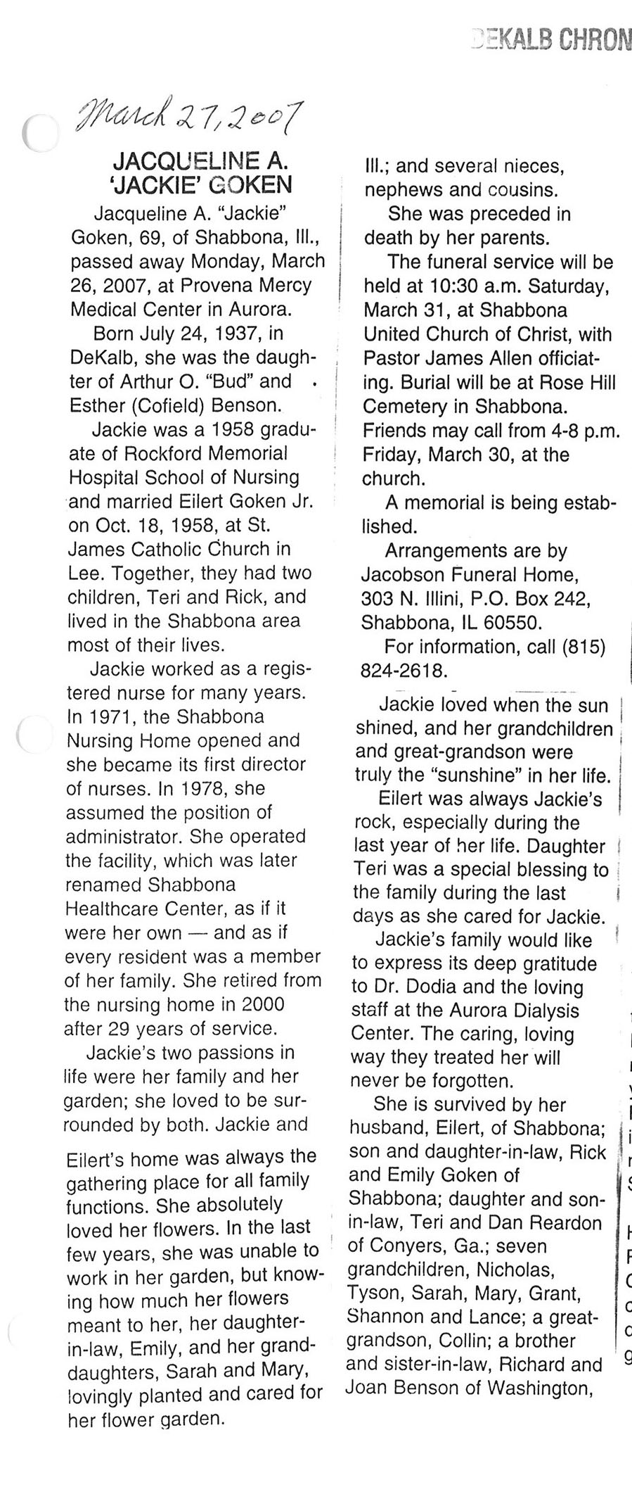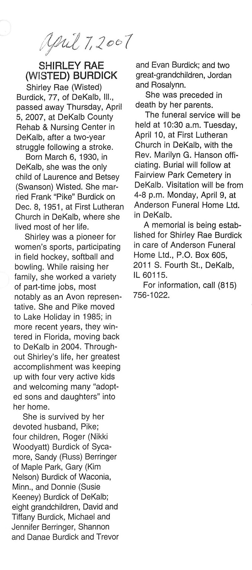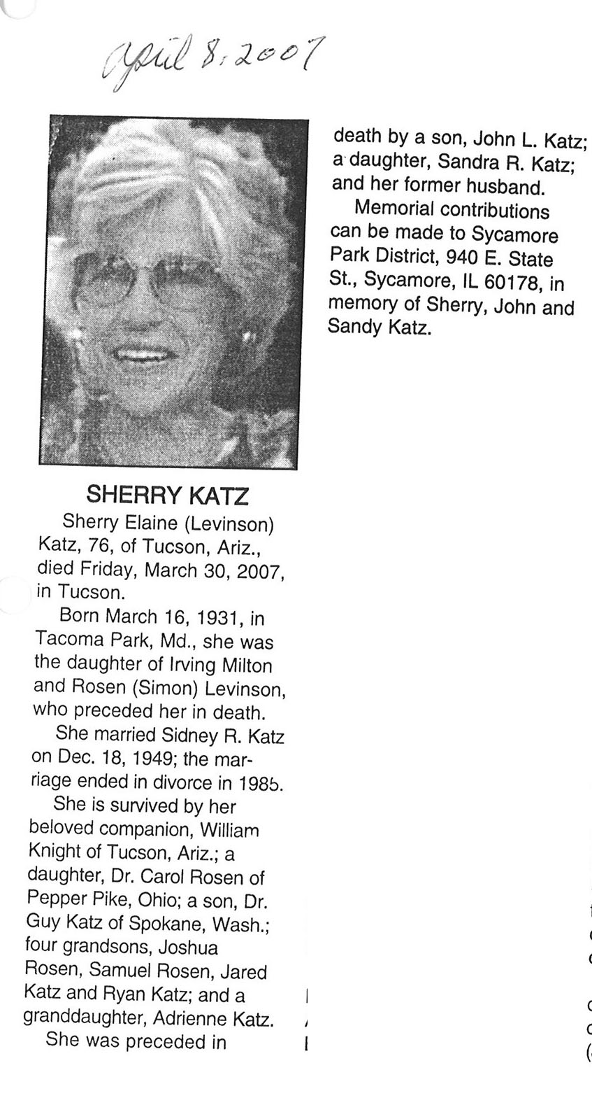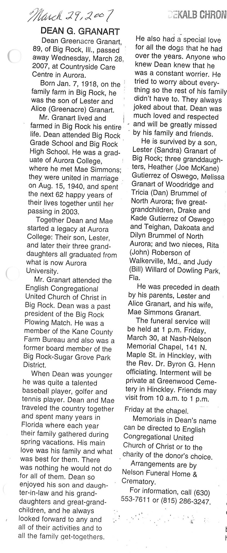 Deceased March 29, 2007