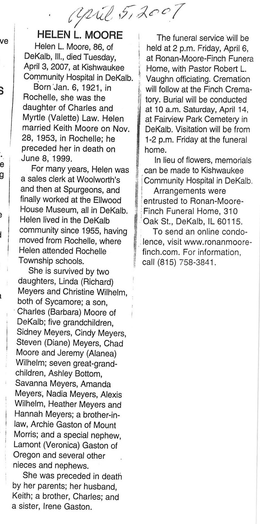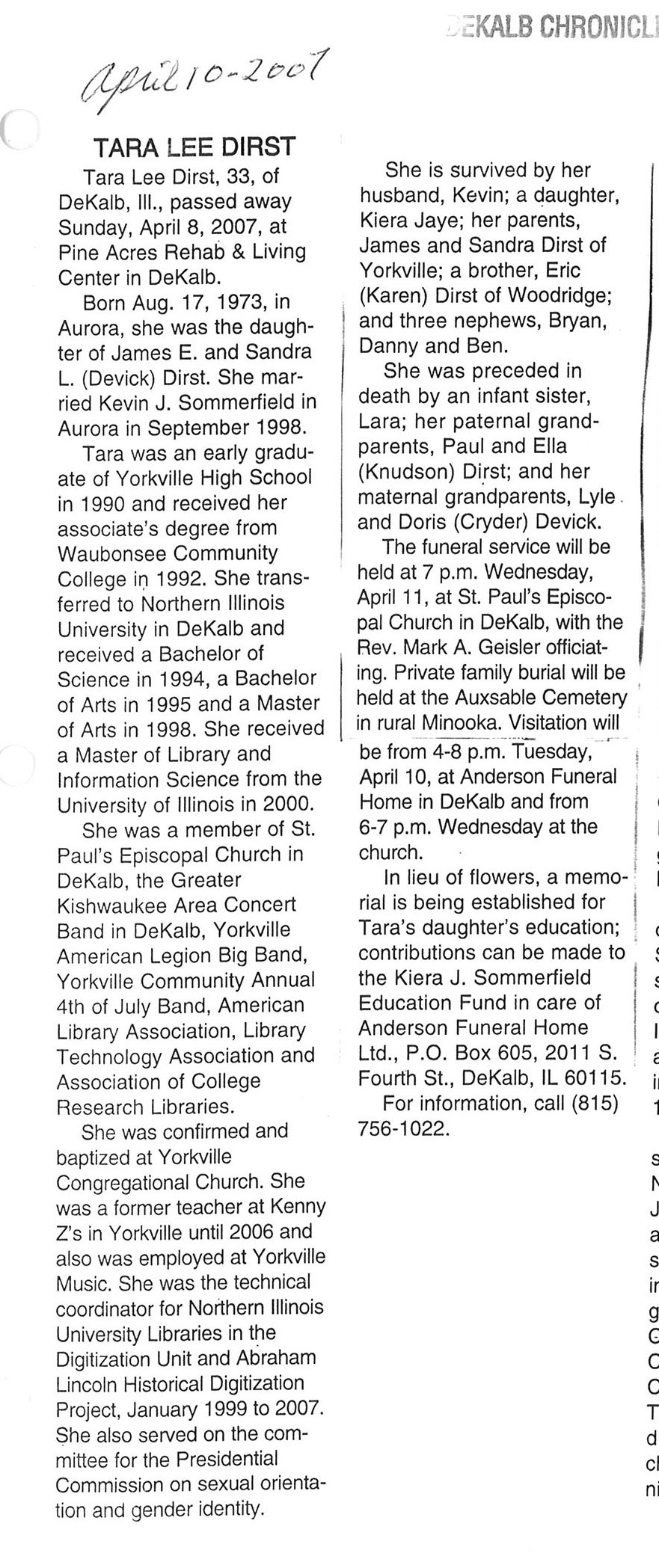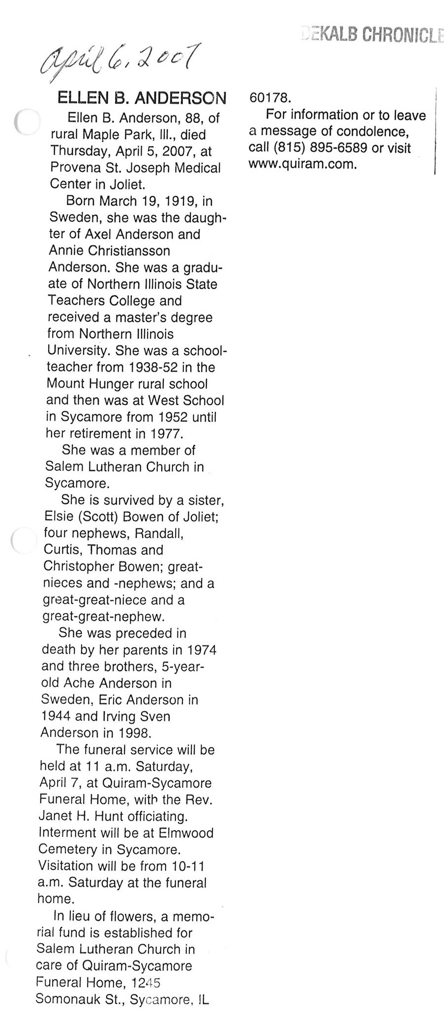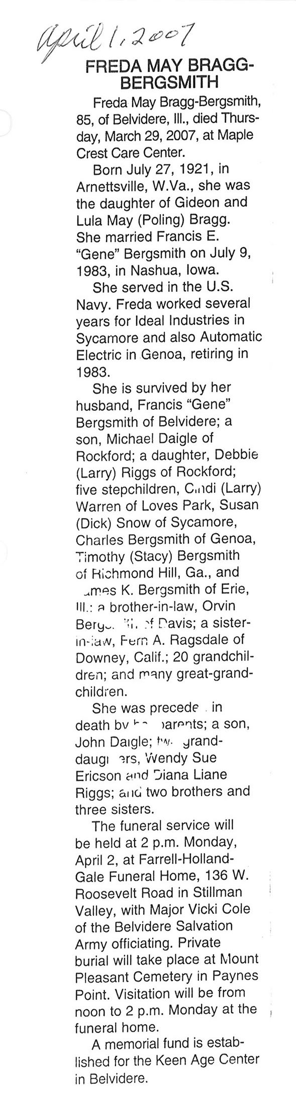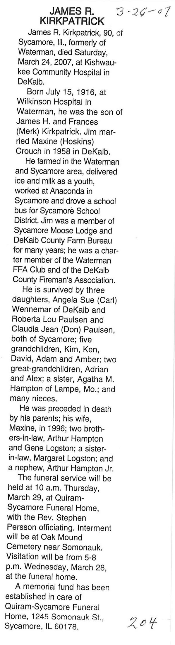 Deceased March 29, 2007