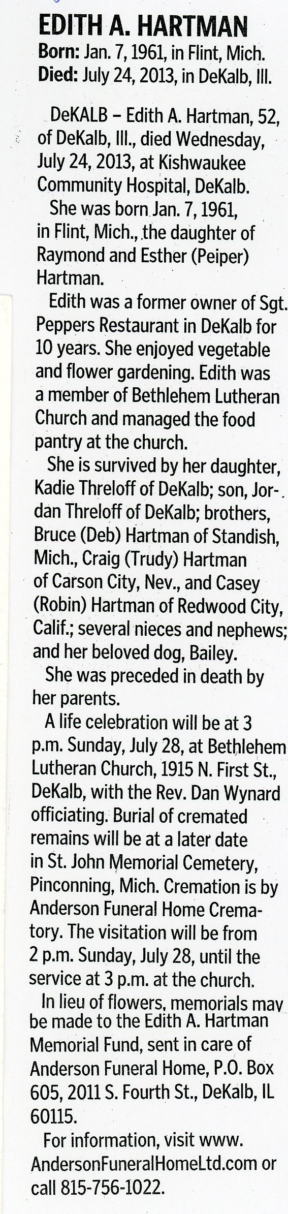 Deceased July 24, 2013