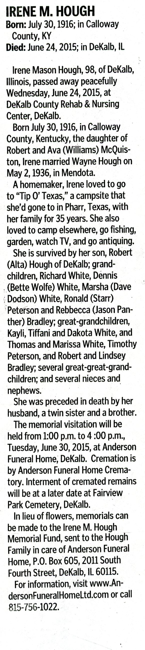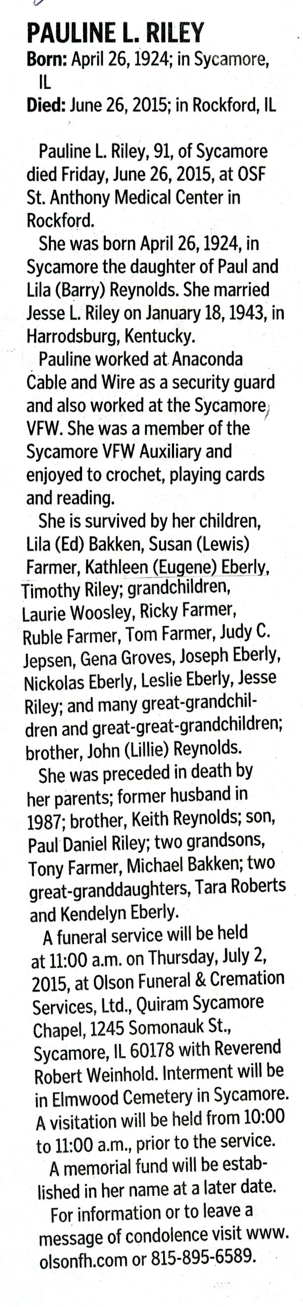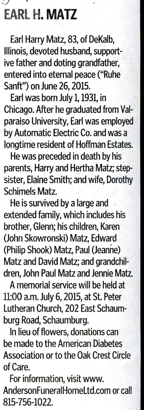 Deceased June 29, 2015