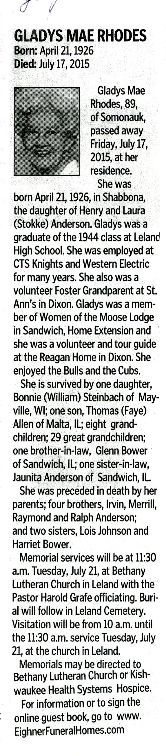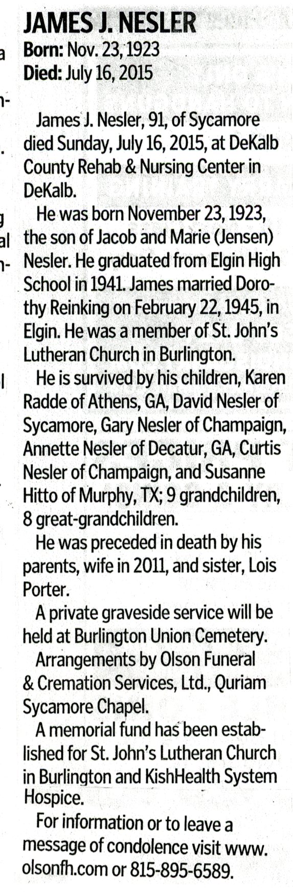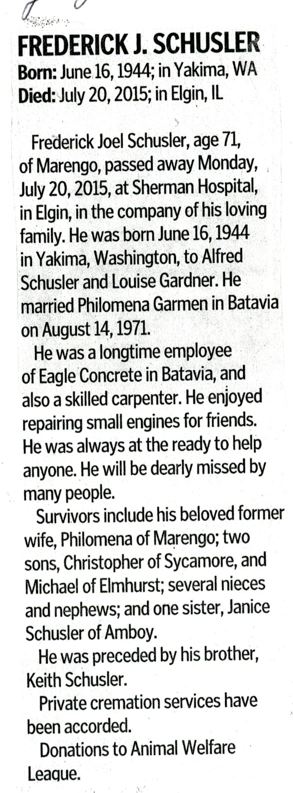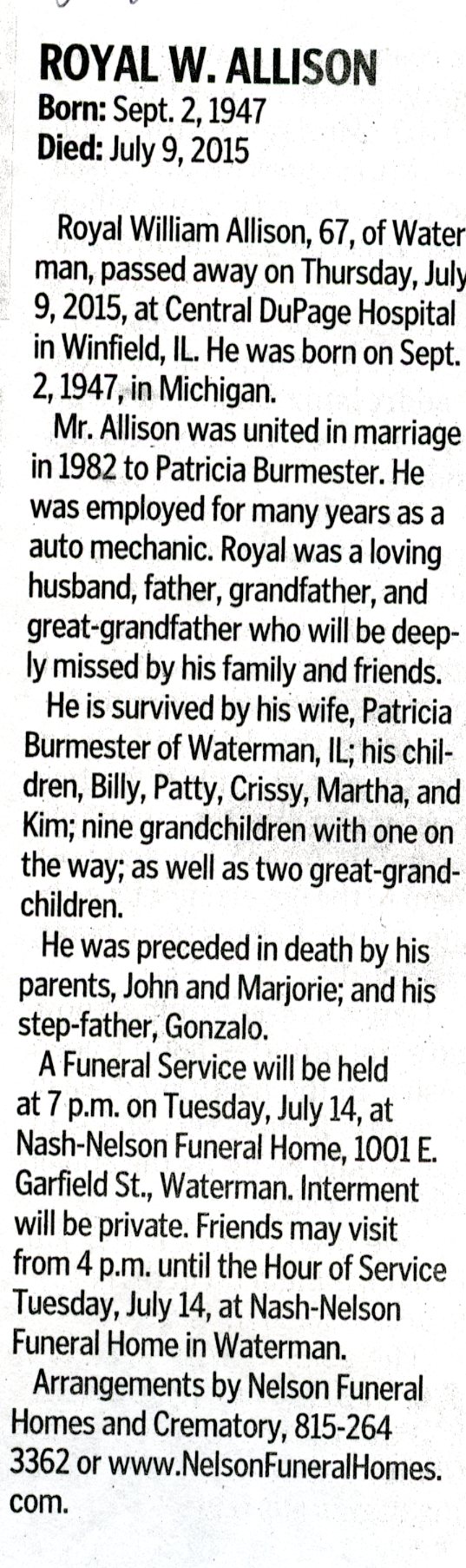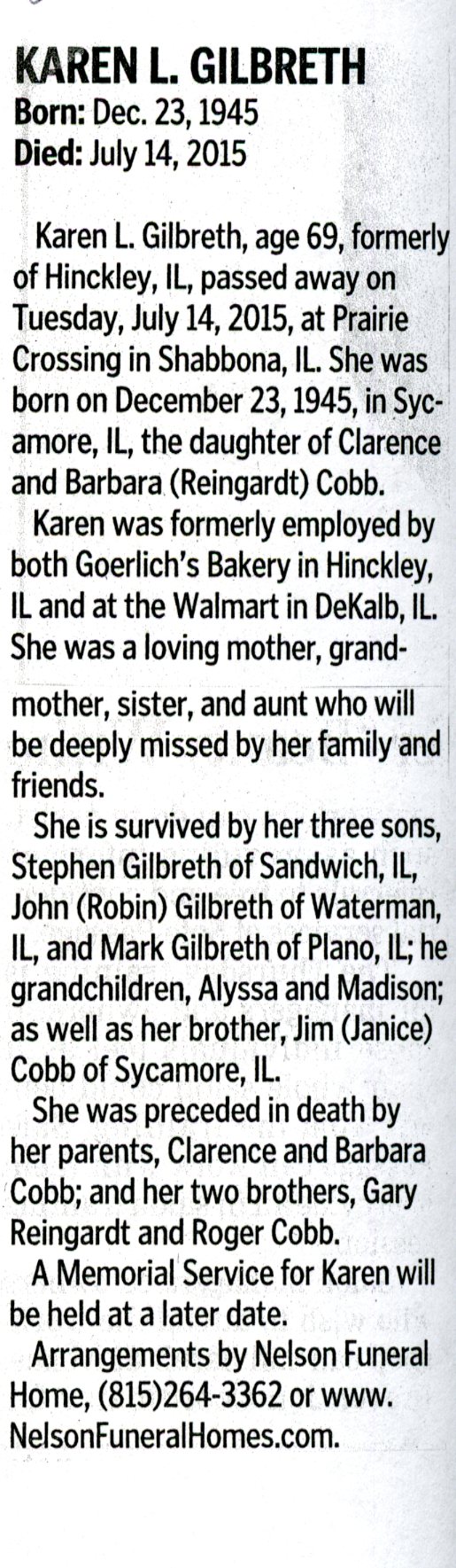 Deceased July 9, 2015