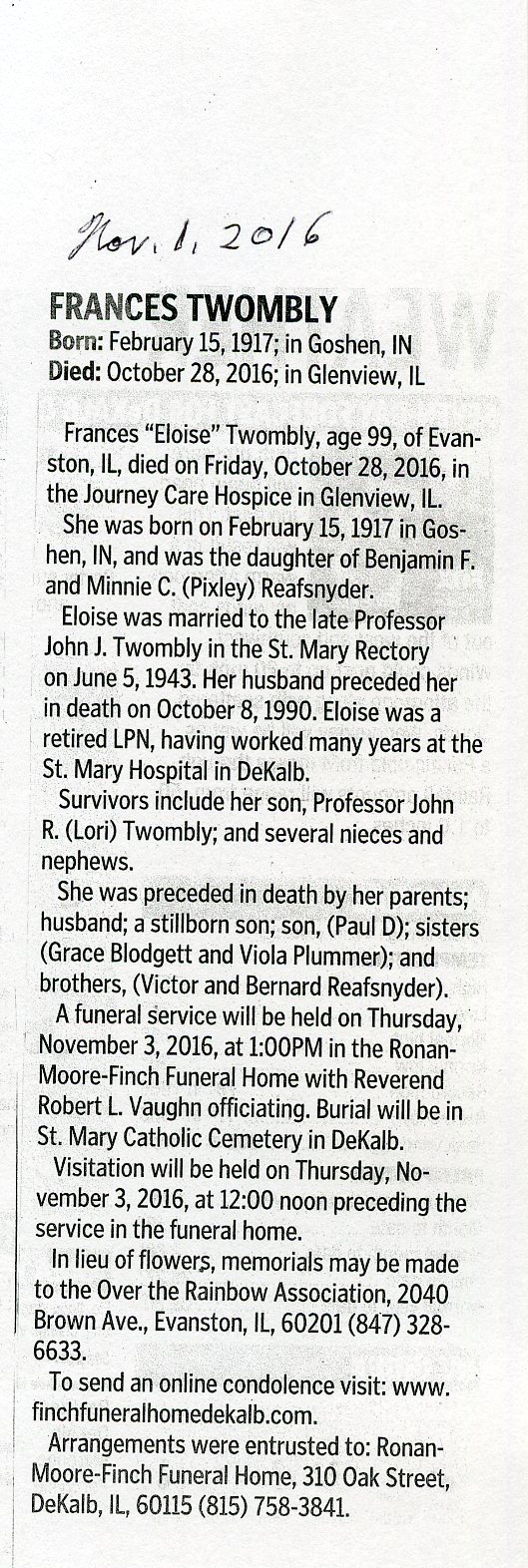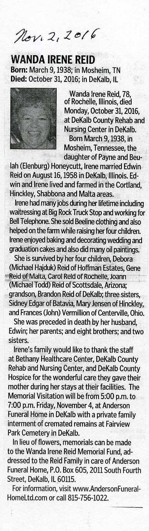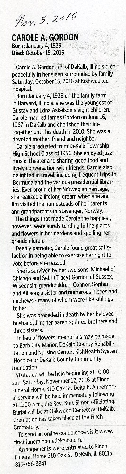 Deceased Nov. 5, 2016