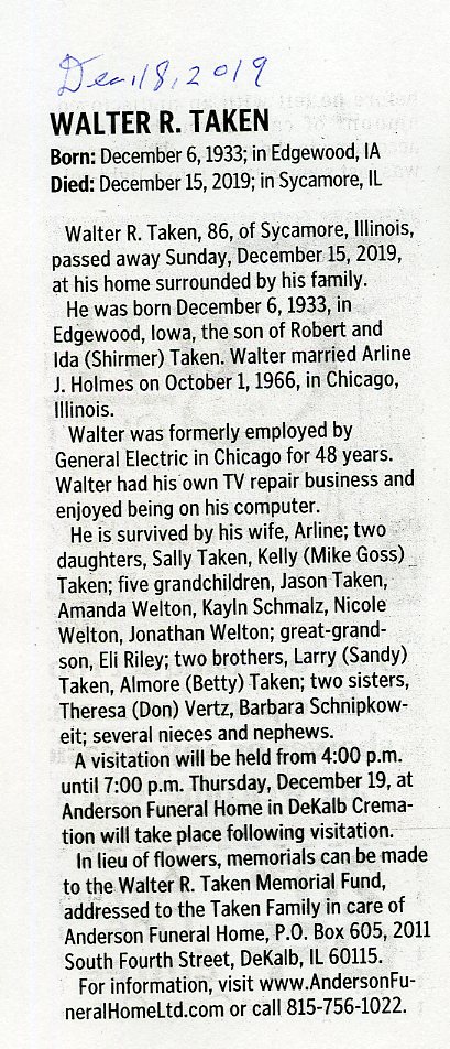 Deceased Dec. 28, 2019